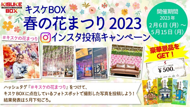 館内フォトスポットで写真を撮影してInstagramにハッシュタグ「#キスケの花まつり」をつけて投稿すると、豪華景品が抽選でゲットできます!