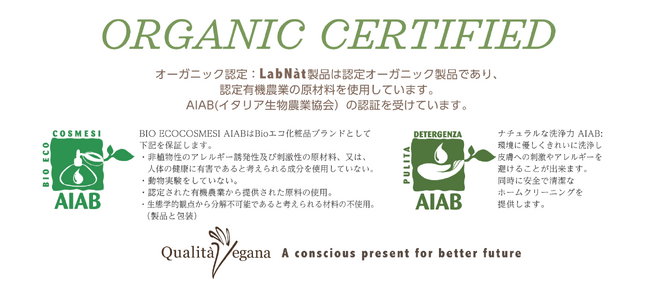 ラプナットは日本で唯一容器ごとイタリアの認定機関AIABのオーガニック認定を受けています。