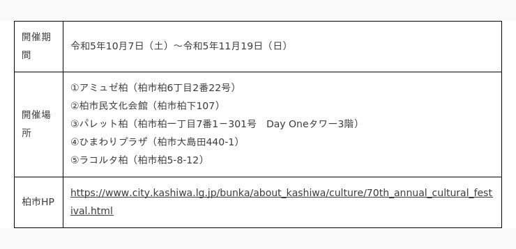 令和5年10月7日(土)から第70回柏市文化祭を開催します。