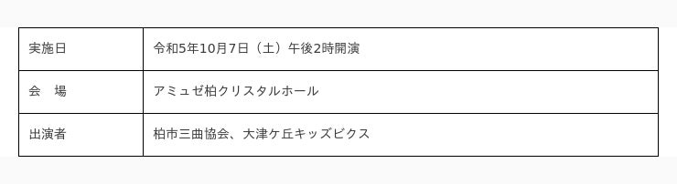 ※会場により開演時間が異なるため、くわしくは柏市ホームページをご覧ください。