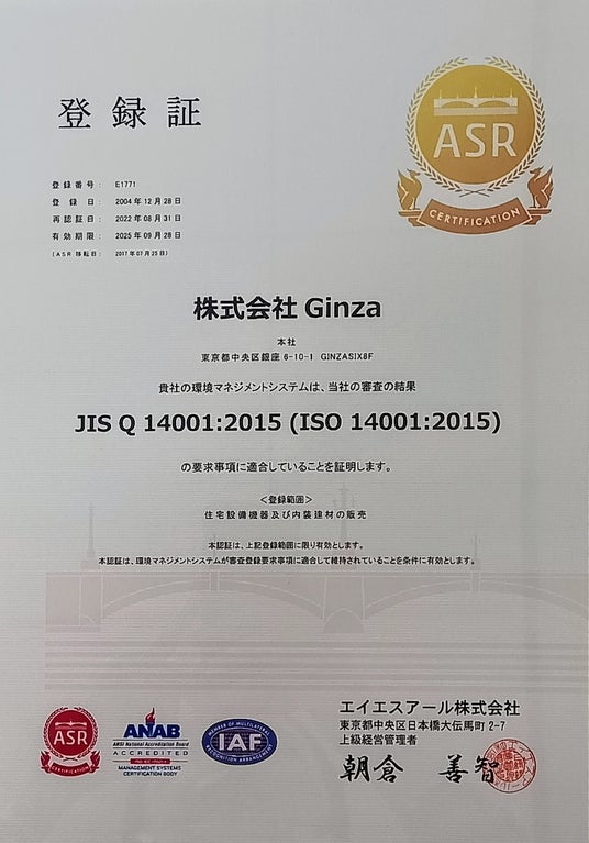 水回りを中心に住宅リフォームを手掛ける株式会社Ginza(本社:東京都中央区/代表取締役社長:池田馨)は、2024年9月、環境マネジメントシステムに関する国際規格である「ISO14001」の定期審査を受けました。