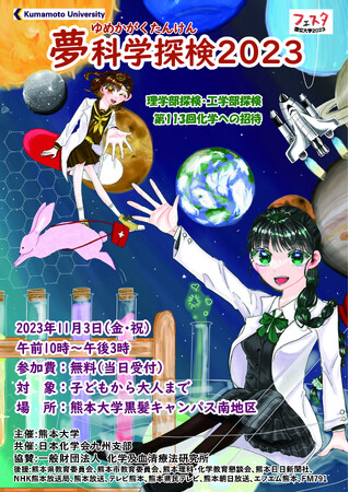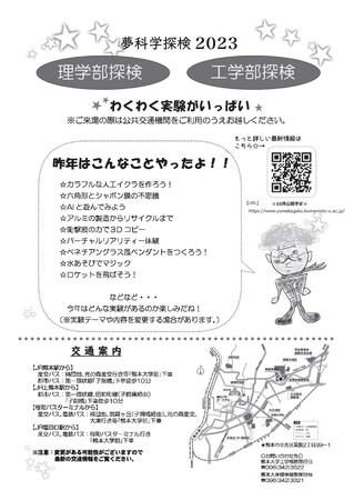 夢科学探検は今回で30回目を迎える、子供から大人まで幅広い世代の方達が科学を体験できる本学南地区最大のイベントです。今回も科学に関する60テーマ近くの展示や工作・実験が行われ、さまざまな遊びを通して科学の楽しさを体感できます。理学部・工学部の学生や先生と一緒に面白い実験をしたり、おもちゃを作ったり、ロボットを操作したりと魅力的なテーマがそろっています。