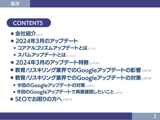 「教育/リスキリング業界でのGoogleアップデートの影響」では、具体的な事例をもとにアップデートの影響を詳細に解説しています。アップデートの特徴や教育/リスキリング業界でのGoogleアップデートの対策などのSEO情報にも注目です。
