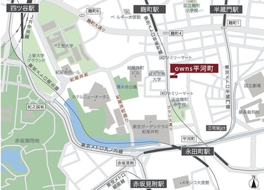 ownsは、人それぞれの働き方や価値観を尊重し、それらが混ざり合うことで「集まることの価値」を最大限高めていく、当社の新しいオフィスブランドです。その第1号となる本物件は、麴町駅と永田町駅を結ぶプリンス通りに面し、複数路線が利用可能な利便性の高い場所に位置しています。