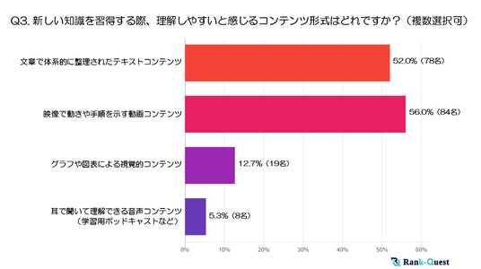 調査結果3.:新しい知識を習得する際、理解しやすいと感じるコンテンツ形式はどれですか?(複数選択可[注])
