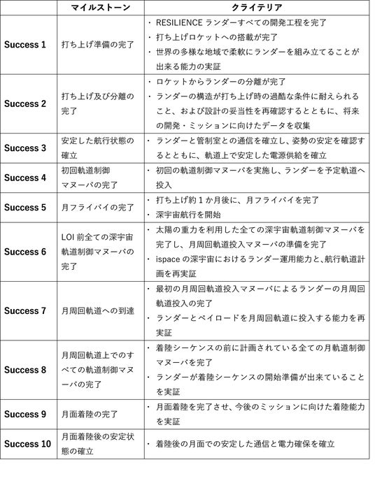 ミッション1の目的は、ランダーの設計および技術の検証と、月面輸送サービスと月面データサービスの提供という事業モデルの検証および強化であり、ミッション1マイルストーンの10段階の内Success8まで成功を収めることができ、Success9中においても、着陸シーケンス中のデータも含め月面着陸ミッションを実現する上での貴重なデータやノウハウなどを獲得することに成功。ミッション1で得られたデータやノウハウは、後続するミッション2へフィードバックされる予定。更にミッション3では、より精度を高めた月面輸送サービスの提供によってNASAが行う「アルテミス計画」にも貢献する計画。