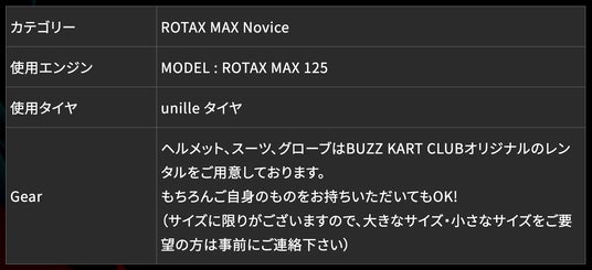 詳しくはBUZZ KART CLUBのHPをご確認下さいませ。