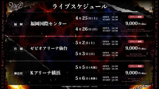 本ツアーは、4月25日(土)・26日(日)に福岡国際センターで行われる福岡公演を皮切りに、5月2日(土)・3日(日)にゼビオアリーナ仙台での宮城公演、そして5月5日(火・祝)・6日(水・休)には神奈川・Kアリーナ横浜での公演へと続きます。ツアーファイナルとなる神奈川公演は、シクフォニ史上最大規模の会場となるKアリーナ横浜での2days公演。シクフォニがこれまで積み重ねてきた活動の到達点であると同時に、新たなステージへと踏み出す象徴的な公演となります。シクフォニ史上最大規模の会場を舞台に、どのような演出とパフォーマンスで“RAGE”を体現するのか、是非ご注目ください。