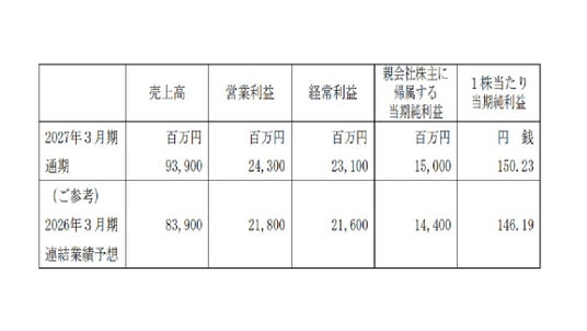 1.2027年3月期通期連結業績予想(2026年4月1日~2027年3月31日)