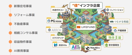 事業内容:注文住宅(ARRCH、PG HOUSE)、不動産、相続コンサルティング、AI教育事業ほか