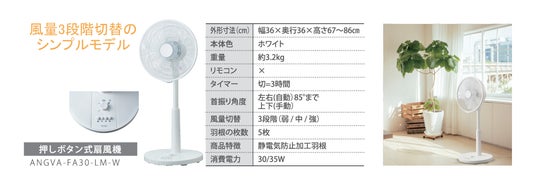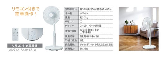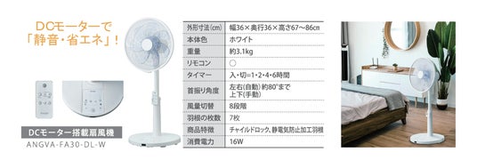 DCモーター搭載扇風機「ANGVA-FA30-DL-W」