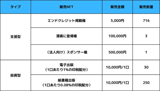 「支援型と投資型」2つのNFT漫画