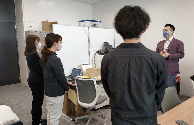 2022年7月~23年6月までに計26人を中途採用し、年間採用目標人数を100%達成しました。リクルートの調査によると、22年下半期に中途採用の目標を達成できた企業は約2割。 当社は認知度の低いBtoBの中小企業でありながら、自社サービスでもある採用代行(RPO)の導入によって、毎月エンジニアも含め300人前後の候補者の紹介を受け、新しい仲間を迎え続けられる盤石な体制を整えています。(写真=当社の中途入社式)