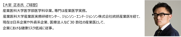 企業や医療機関など約30社で産業医を務める大室正志氏から「メンタル不調になりやすい職場の特徴」や「ストレスチェック制度において期待される産業医の役割」などを解説します。
