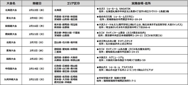ご当地食材をふんだんに使用した、エリアならではのオムライスや、シェフのこだわりが詰まったユニークなオムライスなど、多種多様なメニューが出揃いました。全国9エリアで開催するエリア大会では、『カゴメ オムライススタジアム 2023』決勝大会へとつながるエリア代表店舗を目指し、シェフによる熱い戦いが繰り広げられます。当日は、会場で調理後、審査員による実食審査を行い、エリア代表店舗を決定いたします。