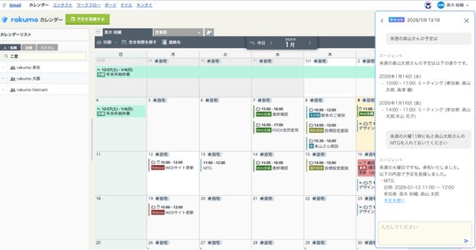 ~ 第1弾は rakumo カレンダー。自然な会話で予定の登録・確認や集計が可能に ~