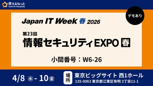使えるねっと株式会社(本社:長野県長野市)は、2026年4月8日(水)~10日(金)に東京ビッグサイトで開催される「Japan IT Week 春 2026 第23回 情報セキュリティEXPO」に出展いたします。