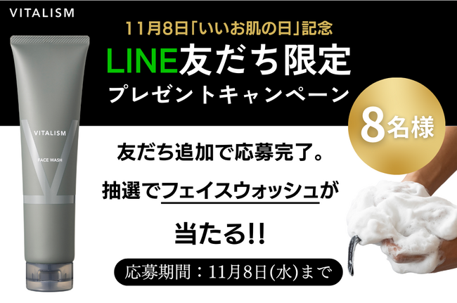 冬目前となり乾燥が気になる季節…「いいお肌の日」にVITALISM フェイスウォッシュで健やかなお肌で過ごしていただきたいとの思いで公式LINE友だち限定プレゼントキャンペーンを開催いたします。