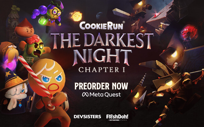 2023年11月2日(木) - デヴシスターズ(株)(共同代表 イ・ジフン、キム・ジョンフン)は、製作中のVRアクションアドベンチャーゲーム「クッキーラン:暗黒の夜(CookieRun: The Darkest Night)」にて、第1章のプレオーダーを開始したことを発表しました。