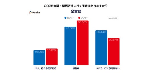 株式会社Payke(ペイク、本社:沖縄県那覇市、代表取締役:古田奎輔、以下「Payke」)は、提供する訪日外国人向けショッピングサポートアプリ「Payke」内で、2025年4月13日より開催される「2025年日本国際博覧会(大阪・関西万博)」に関する多言語意識調査(韓国語・英語・中国語(繁体字))を実施しました。