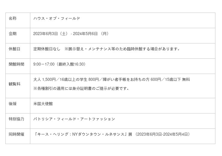 中村キース・ヘリング美術館(山梨県・小淵沢)は、映画『プラダを着た悪魔』(2006年)、米テレビドラマ『セックス・アンド・ザ・シティ』(1998年-2004年)で、衣裳デザイナーおよびスタイリストとして、アカデミー賞衣装デザイン賞ノミネート、エミー賞衣装賞を受賞するほか、現在Netflixで公開中のテレビドラマシリーズ『エミリー、パリへ行く』(シーズン1、2)Netflix(2020、2021年)で活躍するパトリシア・フィールドが、半世紀をかけて蒐集したアートコレクションを紹介する展覧会「ハウス・オブ・フィールド」展(期間:2023年6月3日 [土]から2024年5月6日[月])を開催します。