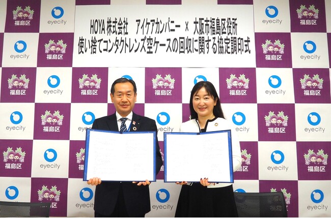 コンタクトレンズ専門店「コンタクトのアイシティ」を事業展開するHOYA株式会社 アイケアカンパニー(事業所在地:東京都中野区中野4-10-2 中野セントラルパークサウス6F)は、2022年11月29日(火)に、大阪府大阪市福島区との『使い捨てコンタクトレンズ空ケースの回収に関する協定』を締結いたしました。