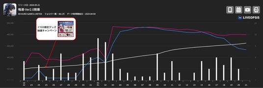 (スパイスマート調査/C105前後の『鳴潮』フォロワー推移 ※白線がフォロワー数)