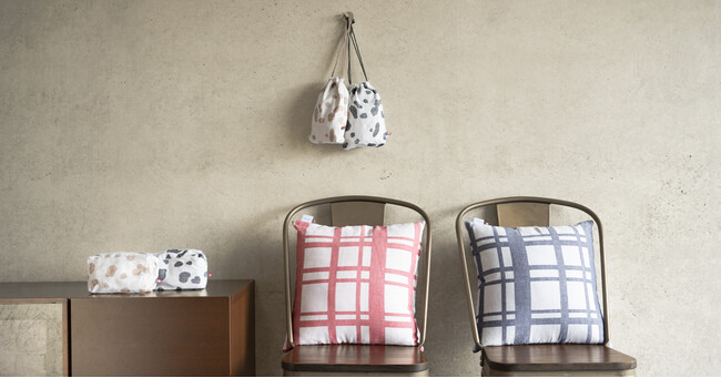 そして今回新たに「今治タオル LABオリジナルグッズ」として、マイバッグと同じタオル地を使用したポーチ、クッションカバー、巾着が仲間入りしました。これらのライフスタイル雑貨は、今治タオル 本店に属するタオルソムリエが日々の接客の中で、「バッグだけでなく、今治タオル製の小物をもっと作って欲しい」「洗える化粧ポーチが欲しい」「今治タオル地のクッションカバーが欲しい」といったお客様の声をヒアリングし、商品開発に繋げたものです。