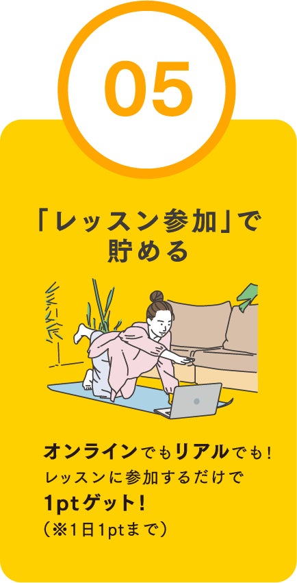 「来館」や「歩数記録」など全6つのシチュエーションでポイントが貯められます。