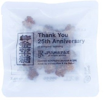 JR九州ホテルズ株式会社(本社:福岡県福岡市、代表取締役社長:角谷 英彦)は、2024年4月26日に会社創立25周年を迎えるにあたり、2024年4月25日~4月27日の3日間、当社運営13施設にチェックインされるお客さまを対象に、感謝の意を込め、manucoffee と入江製菓株式会社で共同開発された『コーヒー金平糖』を25周年オリジナルパッケージにしてプレゼントいたします。