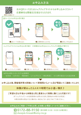 [お申込・お問合先]シェアジョブ農家さん相談弘前支店