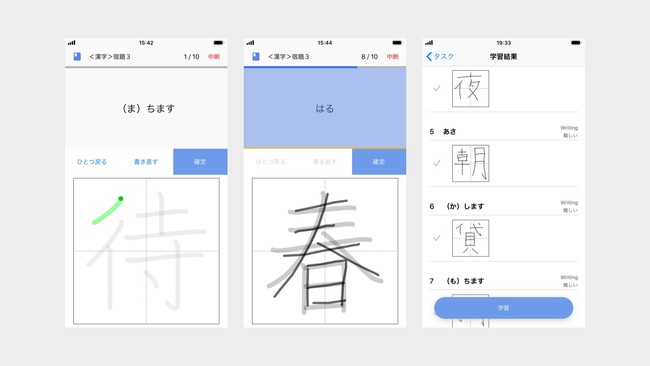 現在、学校や塾といった教育機関を中心に3,500以上の教室で導入されており、フィリピン、インドネシア、モンゴル等の日本国外での日本語学習における活用も増えています。ひらがな、カタカナ、漢字の記憶定着には「手書き機能」が活用されています。非漢字圏の日本語学習者にとって、特に漢字学習は大きな壁となっているため、Monoxerで効率的な自律学習をされています。実際に非漢字圏かつ日本語をゼロから学習した方が3か月で、JFT-Basic(N4相当)に合格した実績もございます。