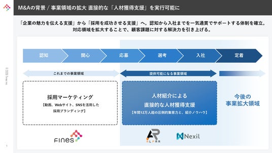 ファインズのメインターゲットである中小企業が抱える課題の多くは「人材確保」にあります。今後も人材支援の領域は需要が拡大していくと予測され、ファインズとしてより包括的な支援をしていくためにM&Aを実施するに至りました。