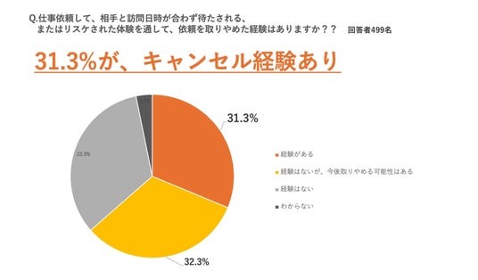 依頼後に訪問日時が確定せずに待たされた結果「キャンセルした経験がある」と回答した人は31.3%