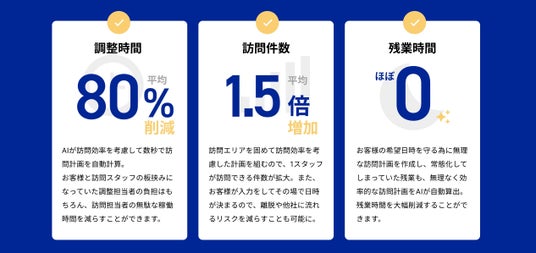 1.訪問スケジュールの効率化:AIが移動ルートや訪問時間を最適化し、効率アップを実現。