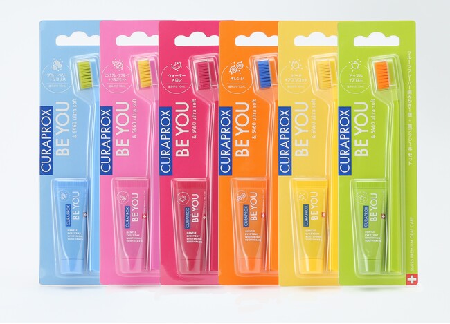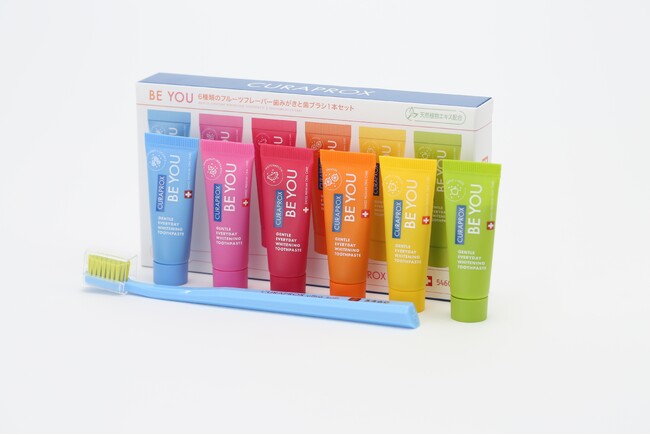先行で販売いたします新商品の歯みがきのクラプロックスビーユー。クラプロックスビーユーは、6つのフルーツミックスペースト。その時の気分で自由に選べるラインナップ。歯をキレイにコーティングする光沢剤(ラメ)も配合しております。