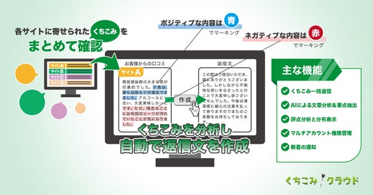 「くちこみクラウド」は宿泊予約サイトに寄せられる「くちこみ」をクラウド上で同時に操作し、それら「くちこみ」の管理・返信業務の負担を軽減することで、返信もれや返信文章の作成に時間がかかるなど、これまで頭を悩ませていた「くちこみ」対応に関する業務を大幅に効率化することができるDXツールです。