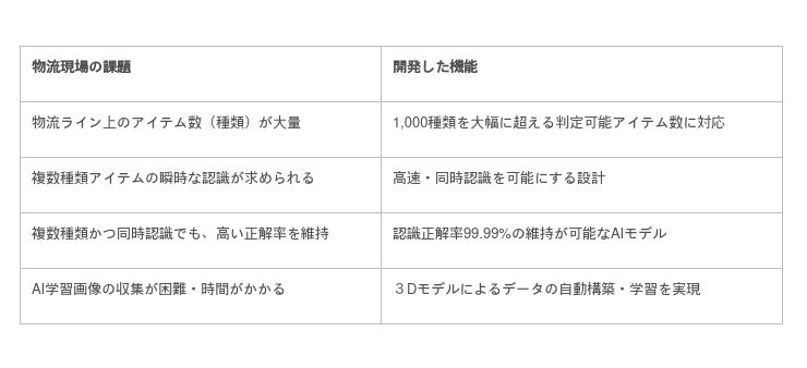 両社は、2020年3月に発表した、物流センターの無人化を担う世界最高レベルの高速・高精度「AI画像認識技術」の実用化に向け、「AI画像認識技術」の向上ならびに物流現場改革に活用できるパッケージ「AIてむ鑑定士(R)」の開発を進めてきました。