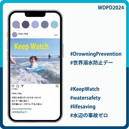 世界溺水防止デー共通のハッシュタグと、@jla_lifesavingをタグ付けしてください。