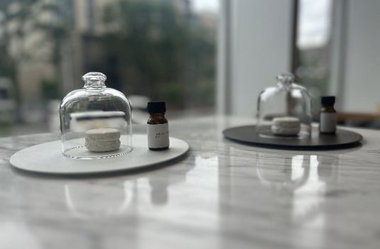 ピエール・エルメ・パリのマカロンをかたどった肥前吉田焼のアロマストーンに、堀田考案のマカロンフレーバーをフレグランスで再現するレシピに沿って用意された3種のアロマオイルを重ねて落とすことで一つの香りが出来上がる過程は、参加者の方にも大変興味深く、新しい体験としてお愉しみいただけました。