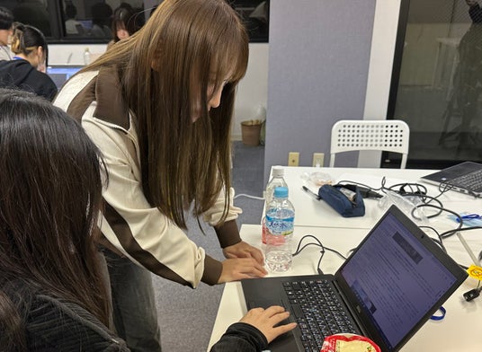 「Tech Runway」 高校生がメンター(大学生)に教わる様子2.