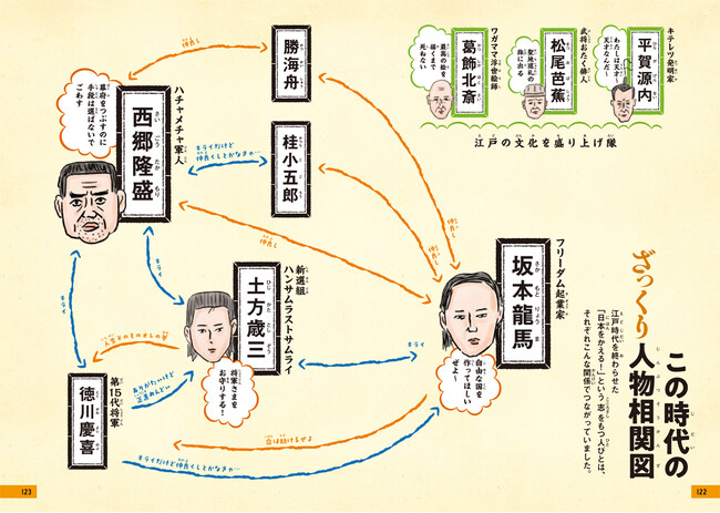 各章のはじめのざっくりマンガ解説&ざっくり人物相関図で歴史の流れを簡単に理解でき、時代の流れが頭に入る仕組みになっています。