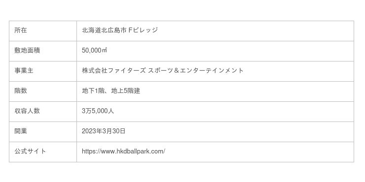 【 「エスコンフィールドHOKKAIDO」概要 】