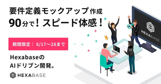 AIとクラウド開発プラットフォームでデジタル化を加速するヘキサベースは、システム開発における「要件定義」の工程に着目し、「要件定義モックアップ」体感デモキャンペーンを期間限定で実施いたします。