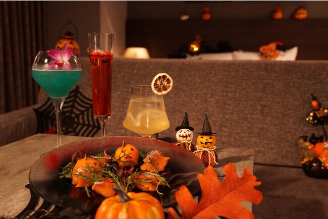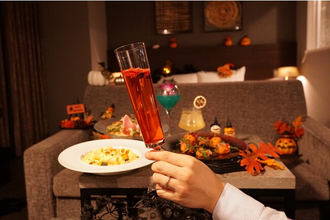 お料理5品とハロウィン限定カクテルを含む26種類のドリンク3時間フリーフローを客室にてご堪能いただく贅沢なおこもりプランです。