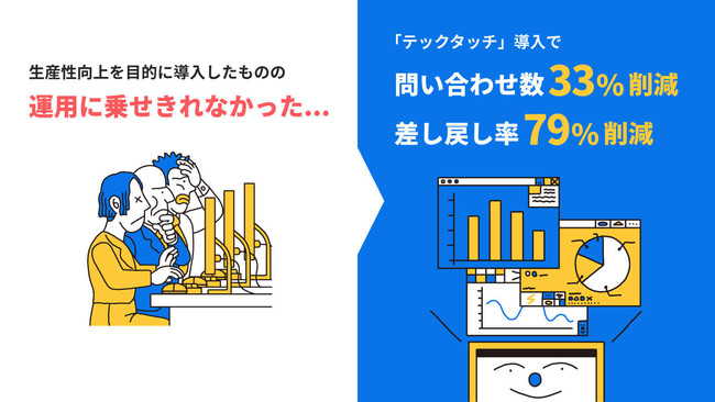 導入前後で、問い合わせ率33%、差し戻し率79%削減に成功した事例も。