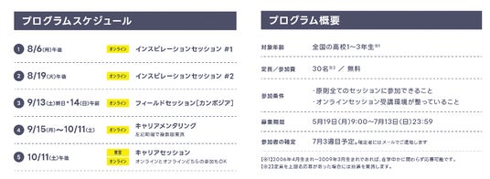 本プログラムの具体的なプログラムスケジュールと応募概要など、詳細については特設サイトをご覧ください。