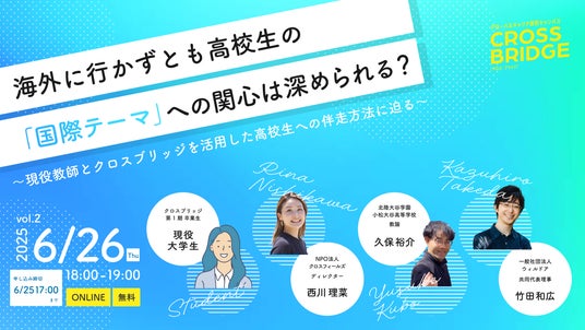 NPO法人クロスフィールズ(東京都品川区、代表:小沼大地)は、2025年8月より国際的な社会課題を探究し、将来の進路について考える全国の高校生向けキャリア教育プログラム「グローバルキャリア探究キャンパス “CROSS BRIDGE”(クロスブリッジ)」の第三期を開講します。