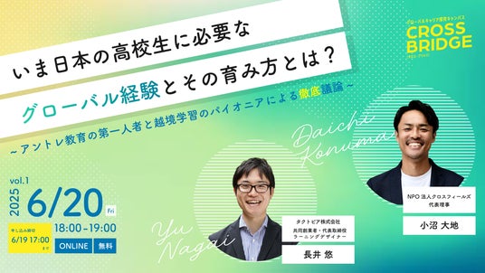 <第一回> 6/20 (金) 18時開催 ゲストにタクトピア長井氏「いま日本の高校生に必要なグローバル経験とその育み方とは?~アントレ教育と越境学習の第一人者による徹底議論~」