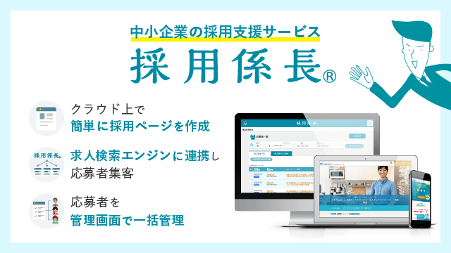 採用係長は最短2分で訴求効果の高い充実した求人ページが完成し、求職者の集客から応募者の選考状況までを一元管理できるクラウド型の採用サイト作成ツールです。中小企業を中心とした国内累計48,000超*の事業所様にご利用いただいております。